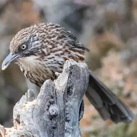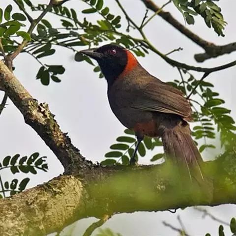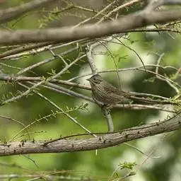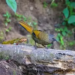 大噪鹛:中型鸟类,体长32-36厘米。额至头顶黑褐色,背栗褐色满杂以白色斑点,…