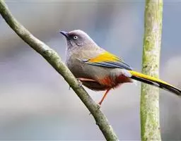 橙翅噪鹛:是噪鹛科、彩翼噪鹛属的中型鸟类,体长22-25厘米。头顶深葡萄灰色或沙褐色。上体灰橄榄褐色,…