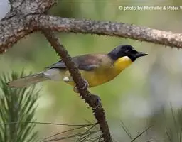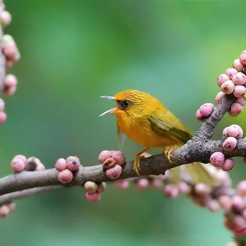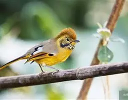 金头穗鹛小型鸟类,体长10~11厘米,是一种黄色小鸟。头顶金黄色有黑色纵纹,眼先黑色,…