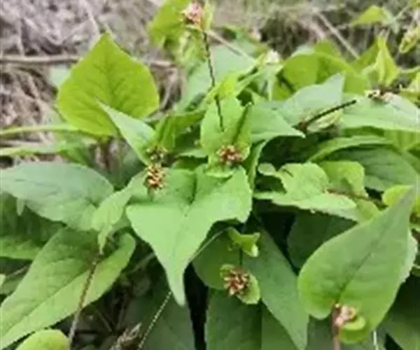 多年生草本。根状茎粗壮,通常呈念珠状,黑褐色,茎直立或斜上,细弱,上部分枝或不分枝,通常数条自根状茎发,高10-40厘米,基生叶卵形或长卵形,长5-12厘米,宽3-6厘米,顶端渐尖或急尖,基部心形,全缘,疏生短缘毛,两面无毛或疏生短柔毛,叶柄长4-15厘米;茎生叶卵形,较小具短柄,最上部的叶无柄,抱茎;托叶鞘膜质,筒状,褐色,长2-4厘米,顶端偏斜,开裂,无缘毛。总状花序呈穗状,紧密,顶生或腋生,长1-2厘米;苞片膜质,长卵形,顶端渐尖,长约3毫米,每苞内具2-4花;花梗细弱,长2-2.5毫米,比苞片短;花被5深裂,白色或淡红色,花被片倒卵形或椭圆形,长3-3.5毫米;雄蕊8,比花被长;花柱3,基部合生,柱头头状。瘦果宽椭圆形,具3锐棱,长3.5-4毫米,黄褐色,有光泽,稍长于宿存花被。花期6-7月,果期7-10月。