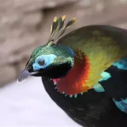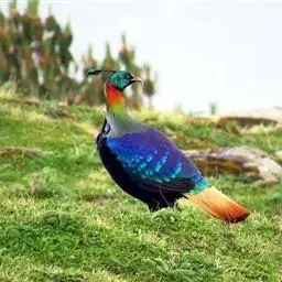 黑长尾雉大型鸡类,体长53~88厘米。雄较雌大。雄鸟通体紫蓝色,脸鲜红色,翅上有一条显著的白色翅斑…