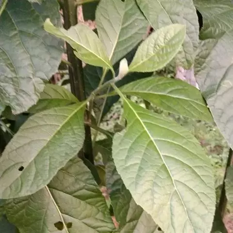 2、扦插方法:6至8月份,侧芽长至15至20厘米,结合除侧芽随剪随播。插穗需3芽,留上部2芽,第3芽剪至叶基部去叶片,插入土中深及第二芽,浇透水,立支架用50%的遮荫网双层遮荫。晴天早、晚各浇水一次,连续浇水半个月,土壤湿度保持在90%,3周后生根,成活率很高,当年秋天即可开花。