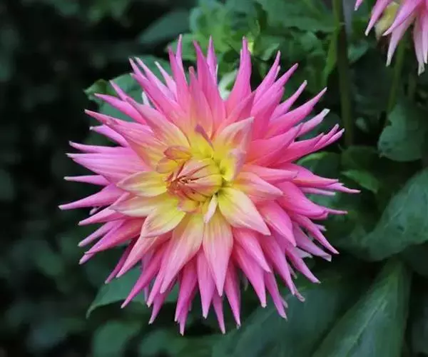 大丽花的花朵,花瓣排列得十分整齐,不像牡丹花那样大小错综,自然奔放而富有浪漫色彩。但是,大丽花也有花瓣卷曲多变的,如一种叫“仙人掌”的,就是这样。