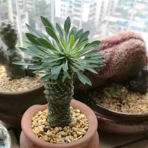 常绿大戟以丛生灌木的形式生长,具有很多茎,在杯状聚伞花序上具有典型的黑色或是深棕色蜜腺。…