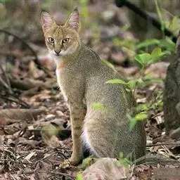 丛林猫与其他野猫相比,四肢在比例上显得较长而尾短。体背棕灰或沙黄色;耳背面呈粉红棕色,…