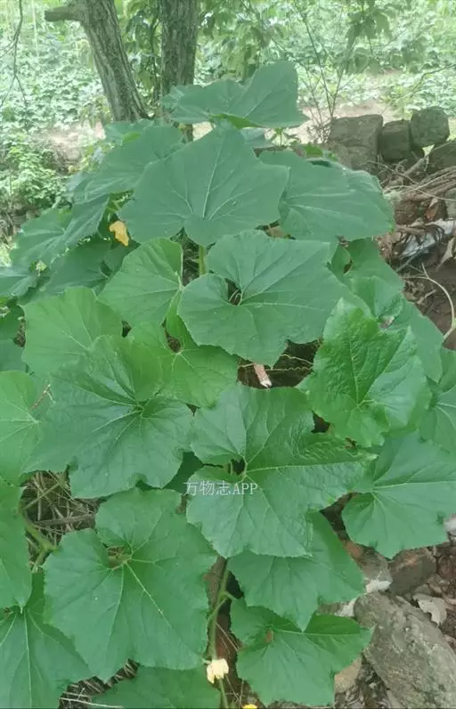 一年生蔓生或架生草本;茎被黄褐色硬毛及长柔毛,有棱沟。叶柄粗壮,长5-20厘米,被黄褐色的硬毛和长柔毛;叶片肾状近圆形,宽15-30厘米,5-7浅裂或有时中裂,裂片宽三角形或卵形,先端急尖,边缘有小齿,基部深心形,弯缺张开,近圆形,深、宽均为2.5-3.5厘米,表面深绿色,稍粗糙,有疏柔毛,老后渐脱落,变近无毛;背面粗糙,灰白色,有粗硬毛,叶脉在叶背面稍隆起,密被毛。卷须2-3歧,被粗硬毛和长柔毛。