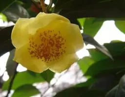 滇山茶:灌木至小乔木,有时高达15米,嫩枝无毛。叶阔椭圆形,上面干后深绿色,发亮,下面深褐色,无毛,…