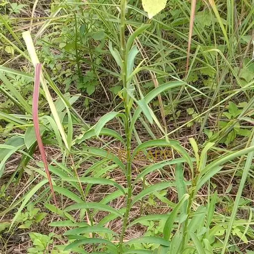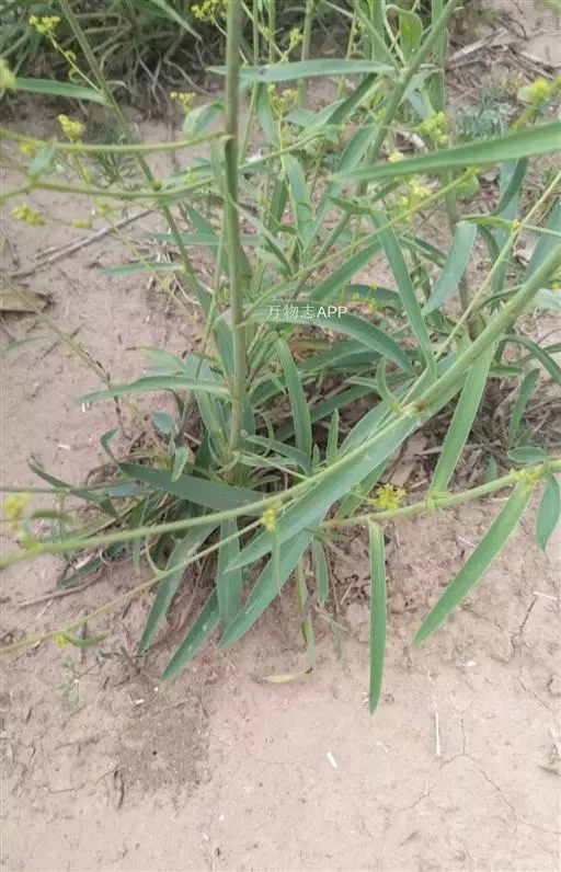 多年生草本,高50 -85厘米。根主根较粗大,棕褐色,质坚硬。茎单一或数茎,表面有细纵槽纹,实心,上部多回分枝,微作之字形曲折。基生叶倒披针形或狭椭圆形,长4-7厘米,宽6-8毫米,顶端渐尖,基部收缩成柄,早枯落;茎中部叶倒披针形或广线状披针形,长4-12厘米,宽6-18毫米,有时达3厘米,顶端渐尖或急尖,有短芒尖头,基部收缩成叶鞘抱茎,脉7-9,叶表面鲜绿色,背面淡绿色,常有白霜;茎顶部叶同形,但更小。