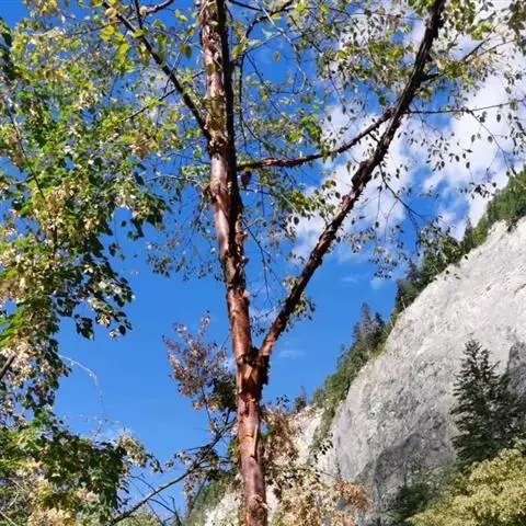 红桦,是桦木科桦木属的大乔木植物。株高可达30米;树皮淡红褐色或紫红色,有光泽和白粉,…