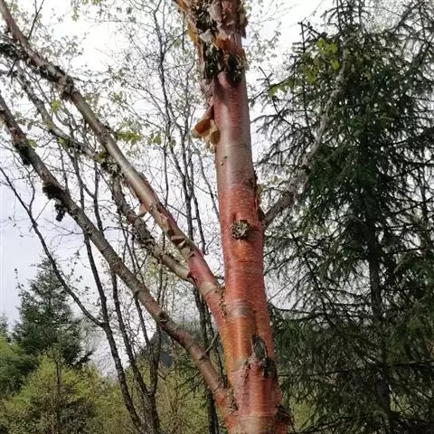 岳桦是乔木的一种。高8-15 (20)米;树皮灰白色,成层、大片剥裂。枝条红褐色,无毛;幼枝暗绿色,密被长柔毛,稍有树脂腺体;芽鳞密被白色绒毛。