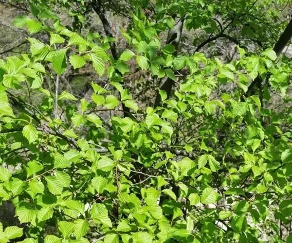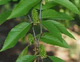 叶三角状卵形,宽卵形或卵形,长2-7厘米,宽1.2-5厘米,顶端锐尖、渐尖,有时成短尾状,基部圆形,截形,宽楔形或微心形,边缘具规则或不规则的锐尖重锯齿,上面疏被毛,下面几无毛,密被腺点,侧脉8-12对,两面沿脉均密被长柔毛;叶柄长1-2.4厘米,幼时密被长柔毛,以后毛渐脱落。果序单生,直立,矩圆形,长1.5-2.7厘米,直径8-15毫米;序梗短,长3-5毫米,密被白色长柔毛;果苞长约5-8毫米,除边缘具纤毛外,其余无毛,基部楔形,3枚裂片均为倒披针形或披针形,侧裂片近直立,稍短于中裂片。小坚果倒卵形或长卵形,长约2.5毫米,宽1-8-2毫米,膜质翅宽为果的其/2或1/3 。
