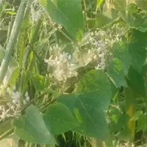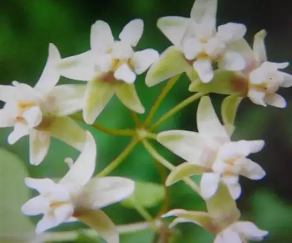 1.牛皮消又名飞来鹤,蔓性半灌木。具乳汁。根肥厚,类圆柱形,表面黑褐色,断面白色。茎被微柔毛。叶对生;叶柄长3-9cm;叶片心形至卵状心形,长4-12cm,宽3-10cm,先端短渐尖,基部深心形,两侧呈耳状内弯,全缘,上面深绿色,下面灰绿色,被微毛。聚伞花序伞房状,腋生;总花梗圆柱形,长10-15cm,着花约30朵;花萼近5全裂,裂片卵状长圆形,反折;花冠辐状,5深裂,裂片反折,白色,内具疏柔毛;副花冠浅杯状,裂片椭圆形,长于合蕊柱,在每裂片内面的中部有一个三角形的舌状鳞片;雄蕊5,着生于花冠基部,花丝连成筒状,花药2室,附着于柱头周围,每室有黄色花粉块1个,长圆形,下垂;雌蕊由2枚离生心皮组成,柱头圆锥状,先端2裂。蓇葖果双生,基部较狭,中部圆柱形,上部渐尖,长约8cm直径约1cm。种子卵状椭圆形至倒楔形,边缘具狭翅,先端有一束白亮的长绒毛。花期6-9月果期7-11月。