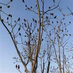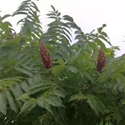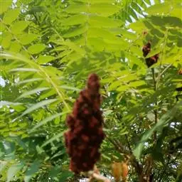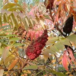 火炬树是漆树科盐麸木属落叶灌木或小乔木;株高,树形不整齐;小枝粗壮,红褐色,密生绒毛;叶轴无翅,…
