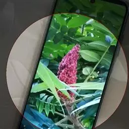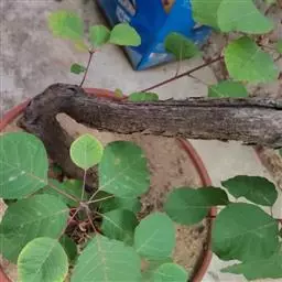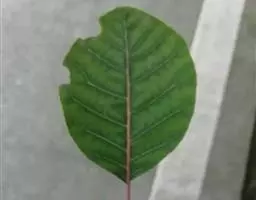 粉背黄栌叶卵圆形,较大,长3.5-10厘米,宽2.5-7.5厘米,无毛,但叶背显著被白粉;叶柄较长,…