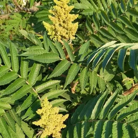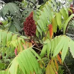 盐肤木 落叶小乔木或灌木,高2-10米;小枝棕褐色,被锈色柔毛,具圆形小皮孔。