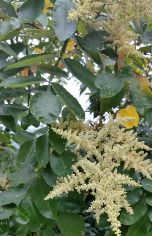 圆锥花序宽大,多分枝,雄花序长30-40厘米,雌花序较短,密被锈色柔毛;苞片披针形,长约1毫米,被微柔毛,小苞片极小,花乳白色,花梗长约1毫米,被微柔毛;雄花:花萼外面被微柔毛,裂片长卵形,长约1毫米,边缘具细睫毛;花瓣倒卵状长圆形,长约2毫米,开花时外卷;雄蕊伸出,花丝线形,长约2毫米,无毛,花药卵形,长约0.7毫米;子房不育;雌花:花萼裂片较短,长约0.6毫米,外面被微柔毛,边缘具细睫毛;花瓣椭圆状卵形,长约1.6毫米,边缘具细睫毛,里面下部被柔毛;雄蕊极短;花盘无毛;子房卵形,长约1毫米,密被白色微柔毛,花柱3, 柱头头状。