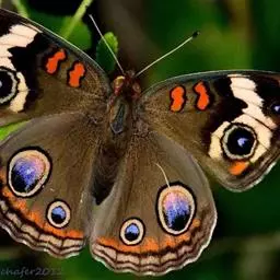 美眼蛱蝶(拉丁名:Junonia almana)为鳞翅目、蛱蝶科、眼蛱蝶属节肢动物。除西北外,全国各地均有分布,国外分布于日本及东南亚。幼虫以马鞭草科的过江藤、车前草科的车前草等为食。