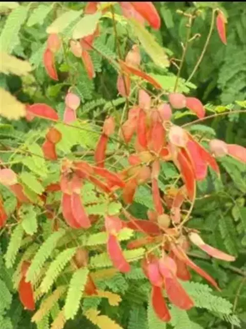朱缨花,豆科朱缨花属的多年生木本植物,枝条扩展,小枝褐色;叶片呈卵状披针形;头状花序腋生,…