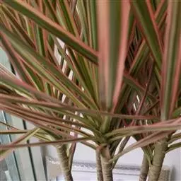 彩色千年木,株形树干小而直立。一般主干在1厘米左右,树节紧密。叶片也细狭如剑形。叶长30—40厘米,叶宽不足1厘米,微风吹过,轻轻摆动。其吸引人的主要是彩色的叶面。在细而长的叶面上,三色千年木,就呈现出红、黄、绿三色,清晰的竖长条纹组成叶面;七彩千年木,其色更为完美,叶面上呈现出清而不乱的白色、乳白色、黄色、奶黄色、大红色、粉色、深绿色、淡绿色,多种彩色构成长条纹的叶片。真可谓色鲜艳丽,五彩缤纷,确有它的独到这处。相比较而言,三色千年木的叶片要比七彩千年木稍宽一些。