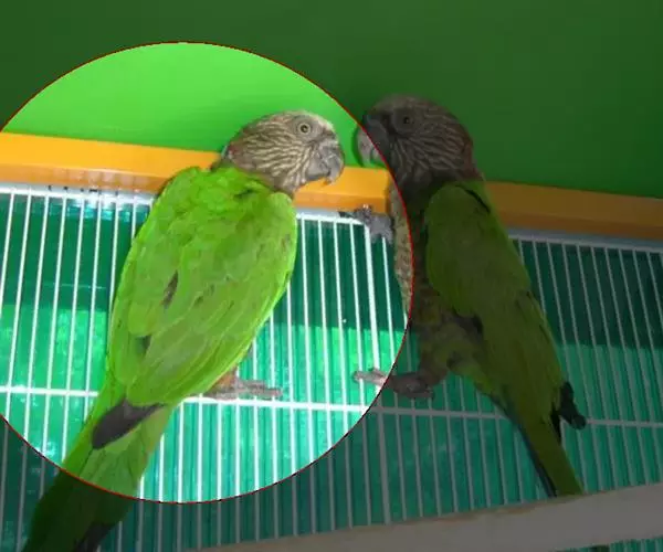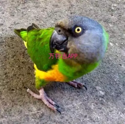 塞内加尔鹦鹉身体主要呈绿色,头部为灰色,腹部为黄色 。