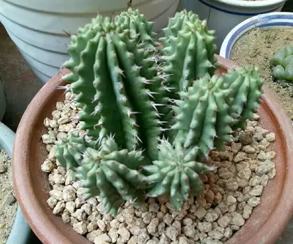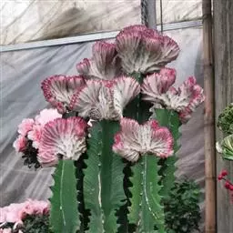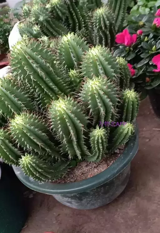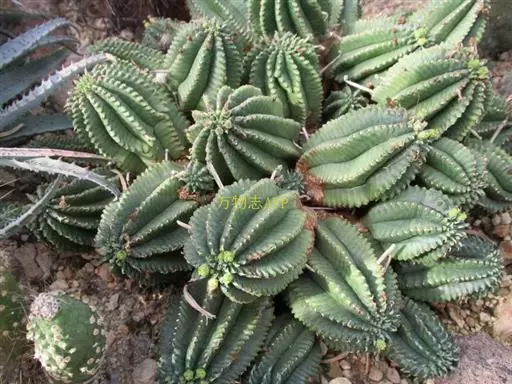 魁伟玉原产南非,是一种大戟科的多年生肉质植物,植株具粗圆筒形肉质茎,有10条以上的突出棱,…