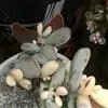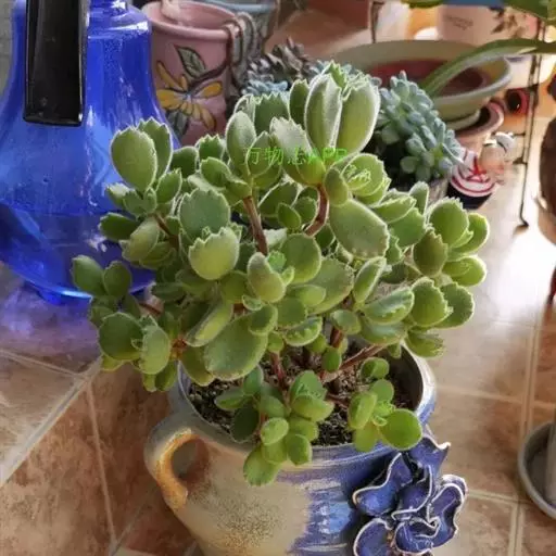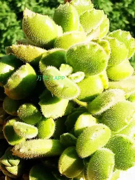 熊童子为景天科银波锦属多肉植物,株形不大,分枝繁多,玲珑秀气,体形文雅,独特漂亮,可作室内小型盆栽。绿色叶片密布白色绒毛,很像熊掌,可用小型工艺盆栽种点缀书桌、窗台等处,也可用为品种收集栽培。