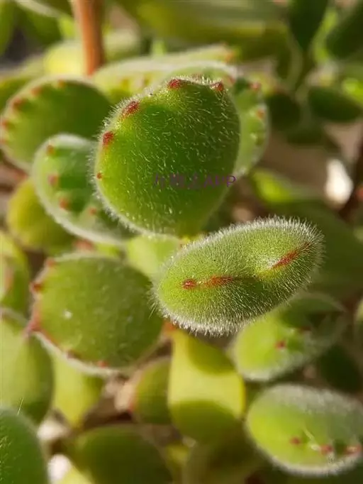 多年生肉质草本植物,植株多分枝,呈矮小灌木状, 熊童子 植株高30厘米,株幅11-12厘米。茎圆柱形,密被短绒毛,绿色。