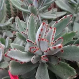 熊童子(学名:Cotyledon tomentosa Harv.)是景天科,银波锦属的多年生肉质草本植物,植株多分枝,茎绿色,肉质叶肥厚,交互对生,卵圆形,绿色,密生白色短毛。叶端具红色爪样齿,二歧聚伞花序,小花黄色,花期7-9月。