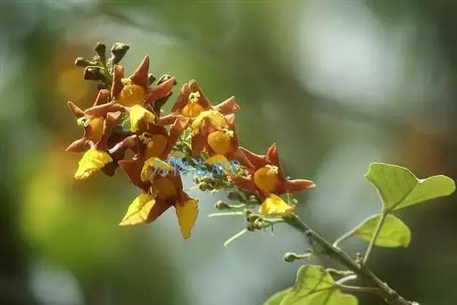 二歧聚伞花序15厘米,花茎长14厘米,基部直径5-6毫米。花朵下垂,花冠管状,顶端稍微变窄,长18毫米,花冠浅橙色至淡黄色,花瓣长8毫米,外卷,雄蕊3-6毫米,花药黄色,花期7-9月。