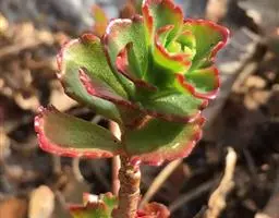 株高25厘米,分枝较少,茎被棕褐色硬表皮,易剥落。叶长圆形或倒披针形,略扁平至几乎圆柱状,长5- 8厘米,宽1.5-2.5厘米,叶全缘,先端较尖锐。