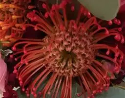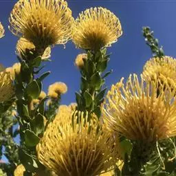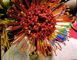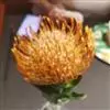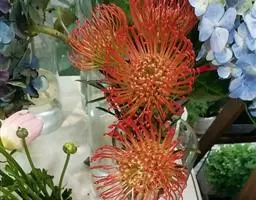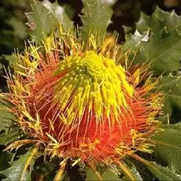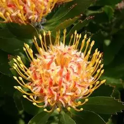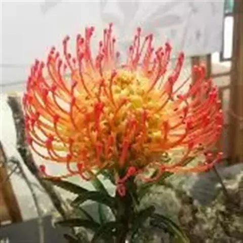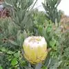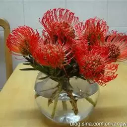 帝王花,山龙眼科帝王花属多年生常绿灌木植;茎干粗壮,叶色翠绿光亮;花朵呈圆球状;其苞片有的完全打开,…