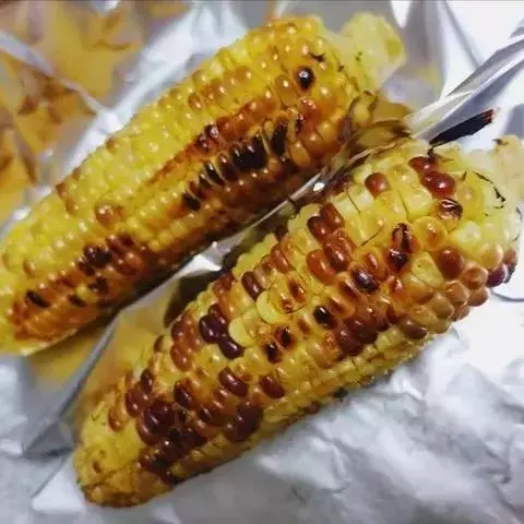 (2)取玉米1根用筷子固定,另一根用铝箔纸包起,并加入调味料A,包密后放入烤架上烧烤,至熟透约须5分钟左右,也可以放入家中烤箱中烤也很方便。