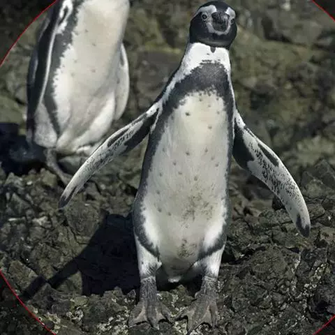 洪堡企鹅是一种分布于南美洲的企鹅,名称源自第一个介绍该物种给西方学界的德国自然科学家亚历山大·冯·洪堡。前肢为鳍脚,适于划水。具鳞片状羽毛,羽轴宽而短,羽片狭窄而密集,均匀分布于体表。骨骼沉重而不充气,胸骨具有发达的龙骨突起,内含有多脂肪的骨髓。尾羽短。跗跖短,并移至躯体后方。跗间具蹼。上嘴的角质部由3个角质片组成。舌表面布满钉状乳头,适于取食甲壳类、乌贼和鱼类等。属易危物种,自然界数量在3,300-12,000 只之间。主要在秘鲁和智利沿岸繁殖。