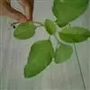 叶片菱状卵形或椭圆状卵形,长5-12厘米,宽2-5厘米,顶端锐尖或尖凹,有小凸尖,基部楔形,全缘或波状缘,两面及边缘有柔毛,下面毛较密;叶柄长1.5-5.5厘米,淡绿色,有时淡紫色,有柔毛。