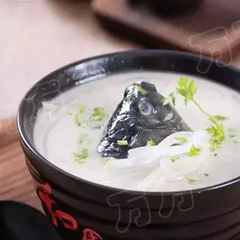 4、把鱼头和鱼骨放入汤底里煮熟(大概七八分钟就行),捞出鱼骨,放在垫了娃娃菜的盘内;
