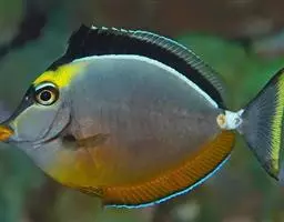 黄高鳍刺尾鱼其体卵圆而侧扁,背鳍及臀鳍硬棘尖锐,前方软条较后方延长,呈伞形;尾鳍截平。尾棘在尾柄前部,…