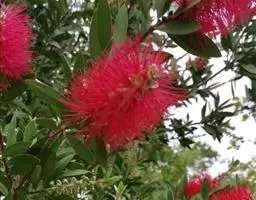 红千层是桃金娘科红千层属的常绿小乔木植物。红千层树皮坚硬,灰褐色,嫩枝有棱,初时有长丝毛,…