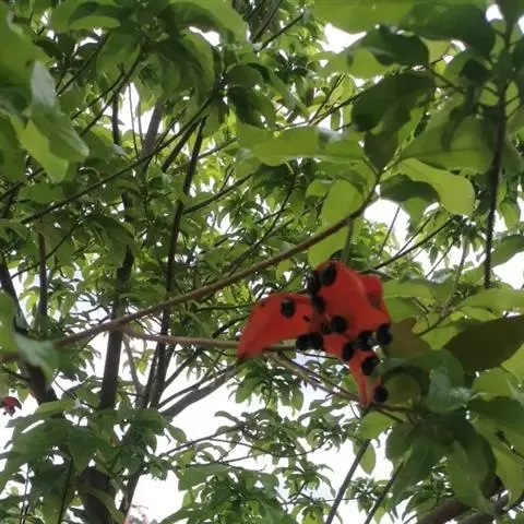 香苹婆为苹婆属Sterculia。乔木;枝轮生,平伸。叶聚生于小枝顶端,为掌状复叶。圆锥花序直立,…