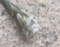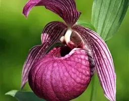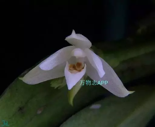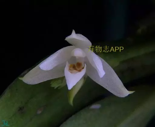 花序1个,自两叶片之间发出,长10-30厘米,具2-6朵花,上部常弯曲,基部具1枚鞘状物;花苞片通常披针形或线形,长5毫米,宽近1毫米,极少卵状披针形,长达8毫米,宽3毫米;花梗和子房长约1.5厘米;花白色,唇瓣上有紫色斑纹;中萼片椭圆状披针形,长约17毫米,宽约5毫米,先端钝;侧萼片镰状披针形,长约15毫米,宽近5毫米,先端钝,基部与蕊柱足合生成明显的萼囊。