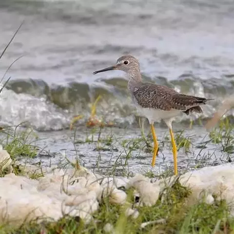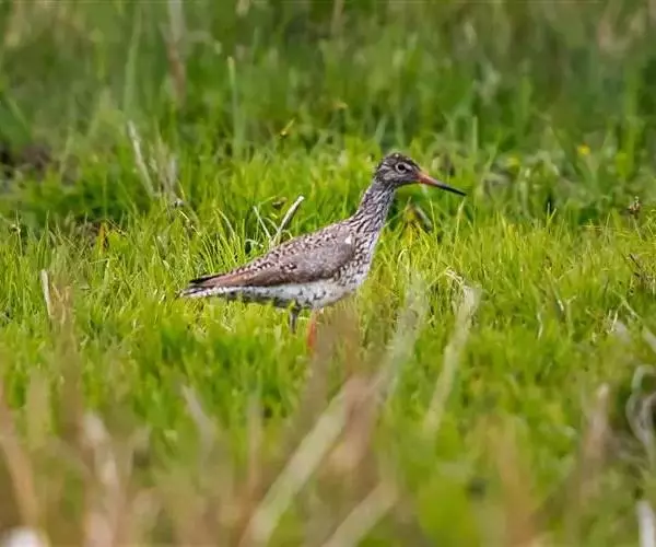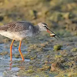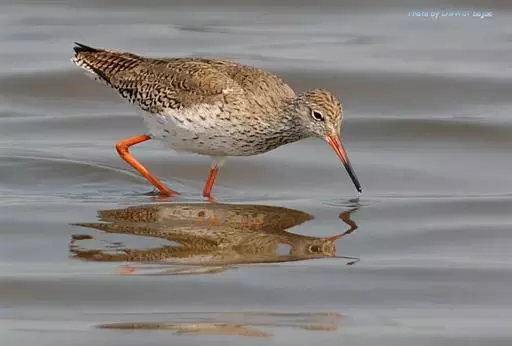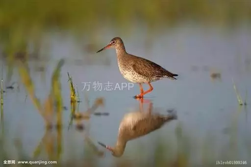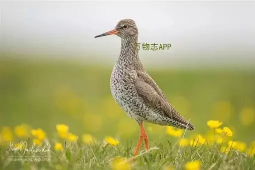 红脚鹬(学名:Tringa totanus):体长28厘米,上体褐灰,下体白色,胸具褐色纵纹。飞行时腰部白色明显,次级飞羽具明显白色外缘。尾上具黑白色细斑。虹膜黑褐色,嘴长直而尖,基部橙红色,尖端黑褐色。脚较细长,亮橙红色,繁殖期变为暗红色。幼鸟橙黄色。