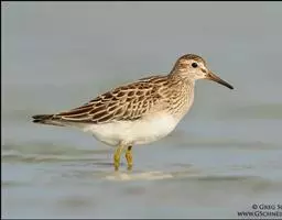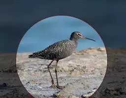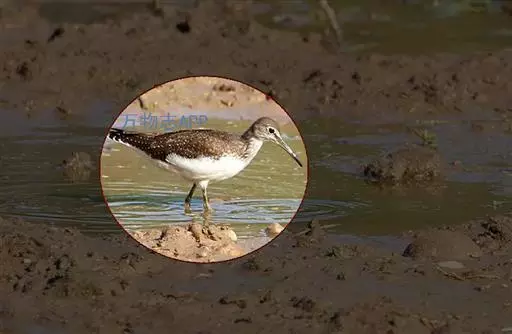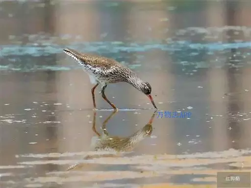 红脚鹬:体长28厘米,上体褐灰,下体白色,胸具褐色纵纹。飞行时腰部白色明显,次级飞羽具明显白色外缘。…