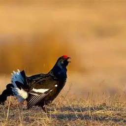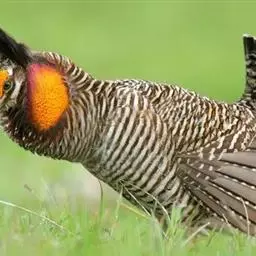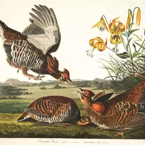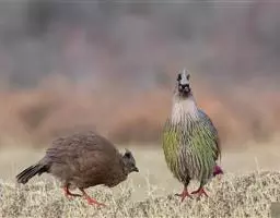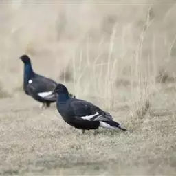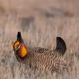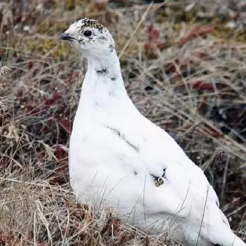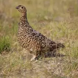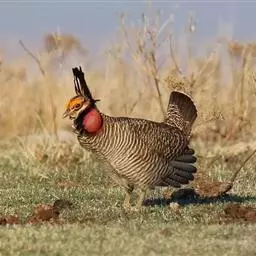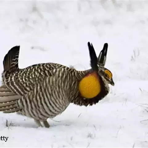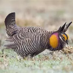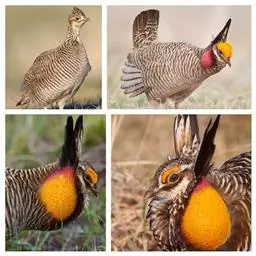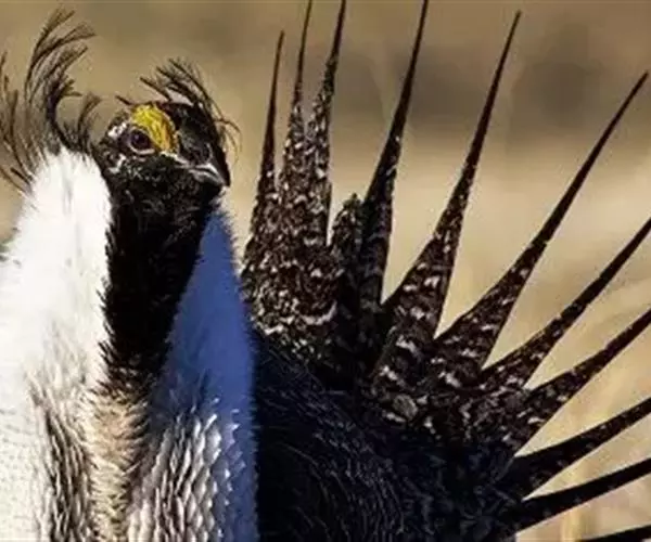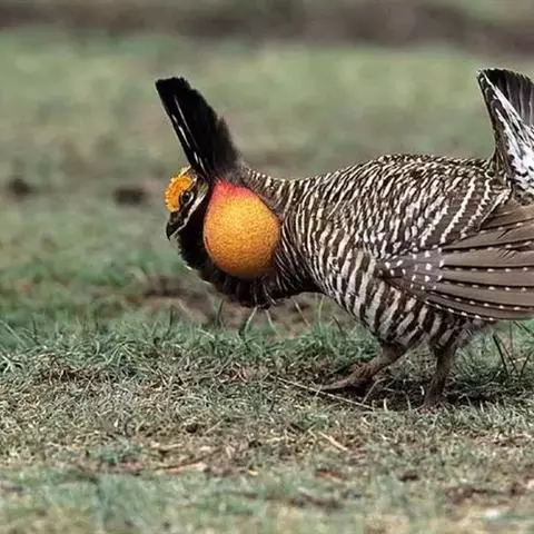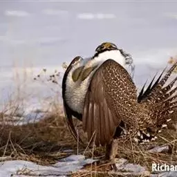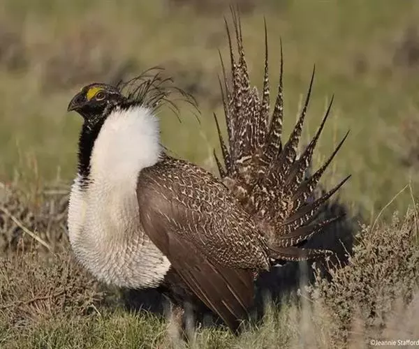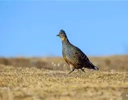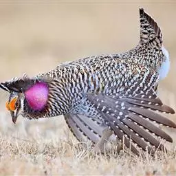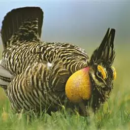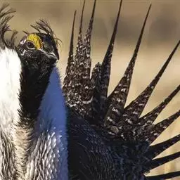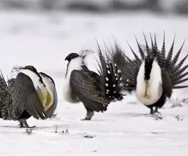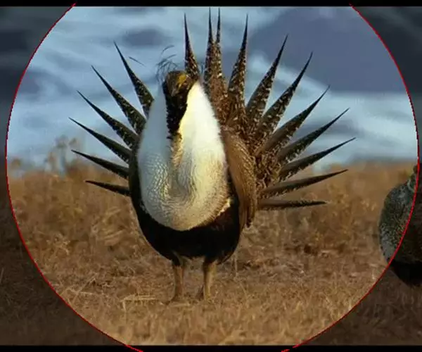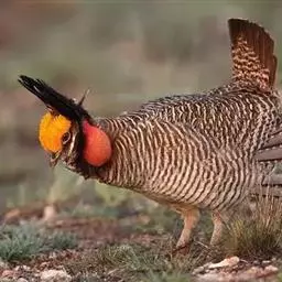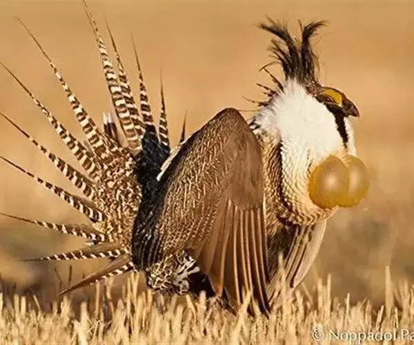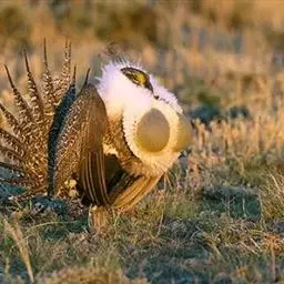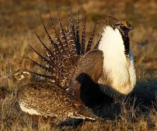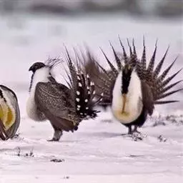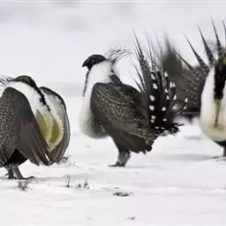 艾草松鸡(学名:Centrocercus urophasianus):是北美洲最大的松鸡。身高48-76厘米,体重2300-3200克。雄性大于雌性,更重。雄性长着两个大胸,雌性却没有胸。 颈上有两个黄色的囊,可以在求偶时充气以吸引异性。走禽,体结实,喙短,呈圆锥形,适于啄食植物种子;翼短圆,不善飞;脚强健,具锐爪,善于行走和掘地寻食。雄鸟具大的肉冠和美丽鲜艳的羽毛,早成鸟,鼻孔和脚均有被羽,以适应严寒。