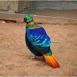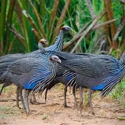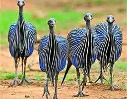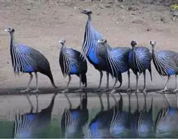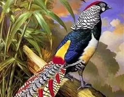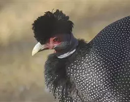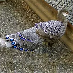 雌鸟羽色类似雄鸟毛,表面白色的斑点比雄鸟小,并有棕色和灰色的斑点。没有气囊,咽喉部位主要是灰色和白色。尾巴和雄性不一样。