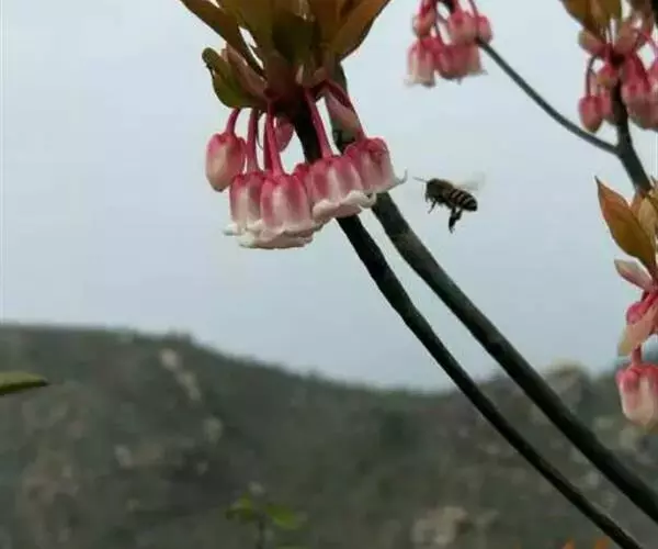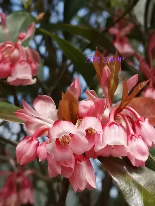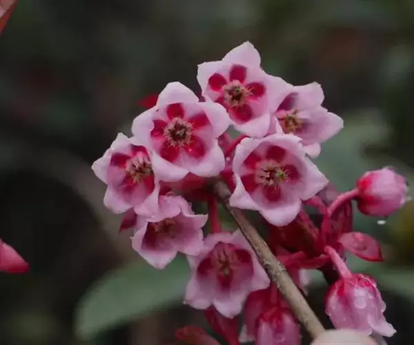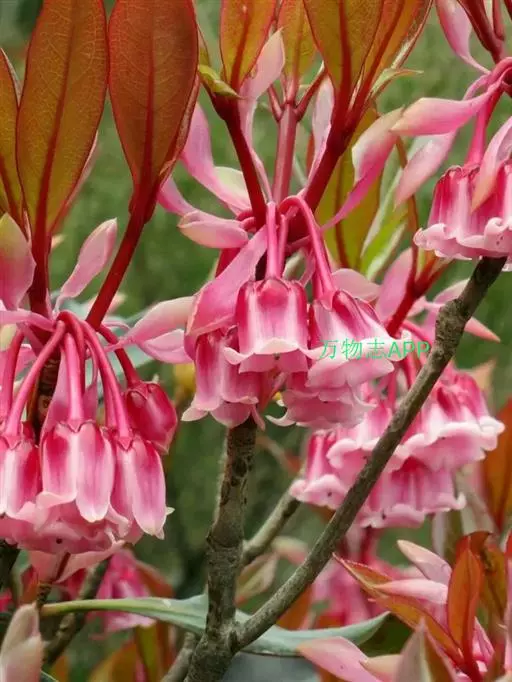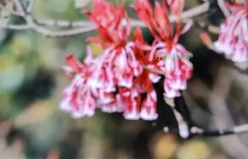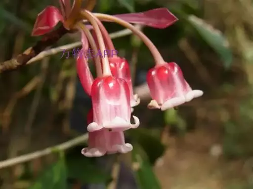 花两性,单一,稀成对生于茎枝顶叶腋,下垂;花梗纤细,淡绿色或带红色,长3-7厘米;花管红色,筒状,上部较大,长1-2厘米,径3-5毫米,连同花梗疏被短柔毛与腺毛;萼片4,红色,长圆状或三角状披针形,长2-3厘米,宽4-8毫米,先端渐狭,开放时反折;花瓣色多变,紫红色,红色、粉红、白色,排成覆瓦状,宽倒卵形,长1-2.2厘米,先端微凹;雄蕊8,外轮的较长,花丝红色,伸出花管外的长1.8-3厘米,花药紫红色,长圆形,长2-3毫米,径约1毫米,花粉粉红色;子房倒卵状长圆形,长5-6毫米,径3-4毫米,疏被柔毛与腺毛,4室,每室有多数胚珠;花柱红色,长4-5厘米,基部围以绿色的浅杯状花盘;柱头棍棒状,褐色,长约3毫米,径约1.5毫米,顶端4浅裂。果紫红色,倒卵状长圆形,长约1厘米。花期4-12月。