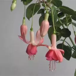 倒挂金钟(拉丁学名:Fuchsia hybrida hort. ex Sieb. et Voss ),别名:灯笼花、吊钟海棠。多年生半灌木,茎直立。高50-200厘米,粗6-20毫米,多分枝,被短柔毛与腺毛,老时渐变无毛,幼枝带红色。叶对生,卵形或狭卵形,长3-9厘米,宽2.5-5厘米。喜凉爽湿润环境,怕高温和强光,以肥沃、疏松的微酸性壤土为宜,冬季温度不低于5℃。
