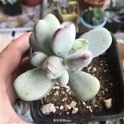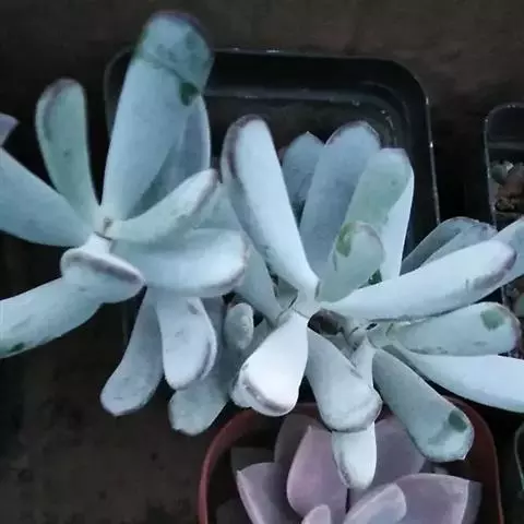 福娘为景天科银波锦属的肉质草本植物。对生的叶片呈短棒状,叶色灰绿,表覆白粉,叶缘外围镶着紫红色,…