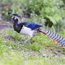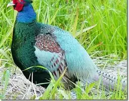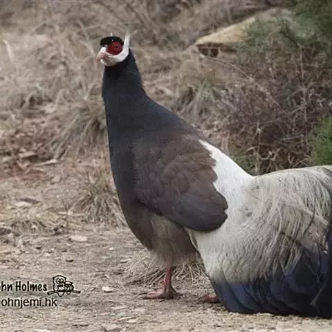 白颈长尾雉:大型鸡类,体长81厘米,体型大小和雉鸡相似。雄鸟头灰褐色,颈白色,脸鲜红色,其上后缘有…