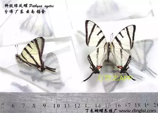 斜纹绿凤蝶,Pathysa agetes ( Westwood , 1843 ),凤蝶科,绿凤蝶属的一种蝴蝶,是世界上比较珍稀的蝶类昆虫之一,分布于中国,印度和东南亚等地。