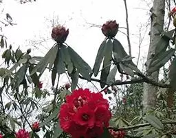 露珠杜鹃:灌木,小乔木,高约2-9米;小枝粗壮,直径约4-5毫米;幼枝有薄层绒毛和腺体,…