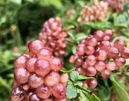 干燥果实卵状椭圆形,压扁,长约7mm,红褐色,具纵棱槽,内有种子1粒,长椭圆形,压扁,背部具2纵槽,腹部具3纵槽,种皮常粘附果肉。气微,味酸,甘。以子粒饱满,色红,味甘者为佳。